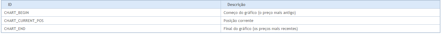 Três identificadores a partir da lista ENUM_CHART_POSITION são os possíveis valores do parâmetro de posição para a função ChartNavigate().