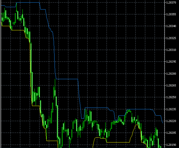O indicador MT4 e MT5 de alerta alto / baixo recente da EarnForex mostra duas bandas diferentes.
