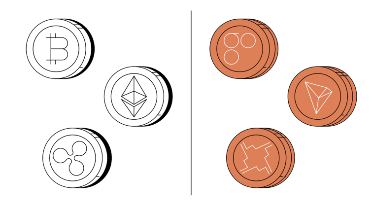 Os dois ativos digitais mais comuns baseados em blockchain são criptomoedas e tokens. A maior diferença entre os dois é que as criptomoedas têm seus próprios blockchains, enquanto os crypto tokens são construídos em um blockchain existente.
