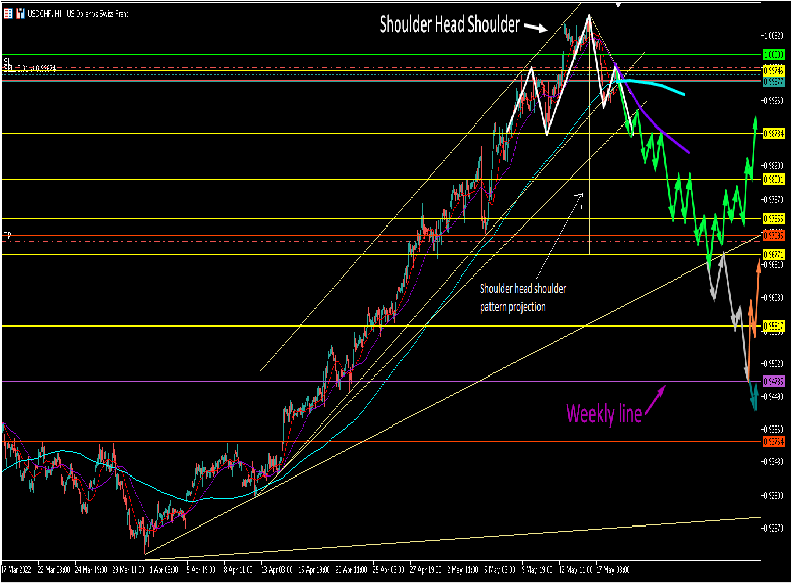 Gostaria de saber se o padrão gráfico que desenhei em USD/CHF, Ombro Cabeça Ombro está correto.