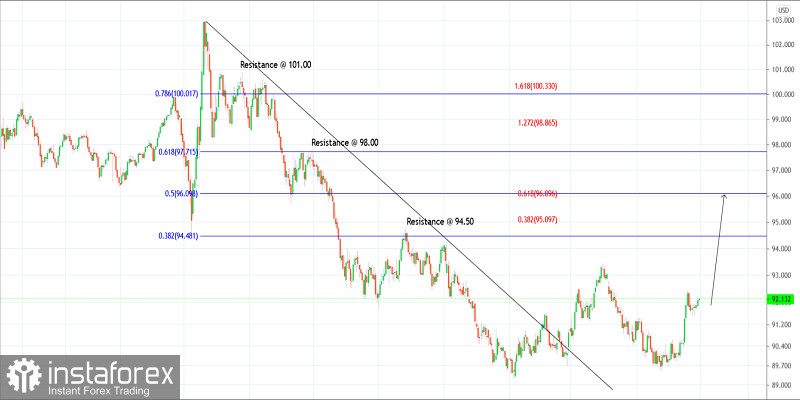 Perspectiva técnica do Índice do Dólar: O índice do dólar americano pode estar se preparando para subir em direção aos níveis de 95,00 e 96,00 nas próximas semanas. Os touros parecem estar no controle e permanecem prontos para superar os níveis 93,40 no futuro imediato. Apenas uma ruptura abaixo de 89,50 e subsequentemente para 89,20 mudaria a estrutura de alta acima e traria de volta o controle dos ursos. O índice do dólar americano está sendo negociado próximo dos níveis de 92,12 / 15 no momento da escrita e deve avançar em direção a 93,20, pelo menos na próxima perna.