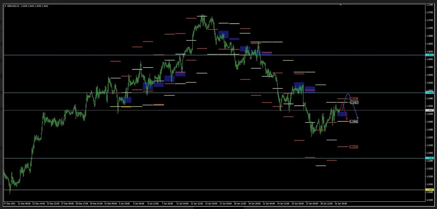 EUR/USD semana 31 de janeiro - 4 de fevereiro de 2022 sugere uma tentativa de desenvolver uma correção de alta e testar a área de resistência perto do nível de 1,1305. Onde devemos esperar que o par continue caindo para a área abaixo do nível de 1,0585. Um sinal adicional a favor do declínio será um teste da linha de resistência no índice de força relativa (RSI). O cancelamento da opção de queda para o Euro/Dólar será um forte crescimento e uma quebra do nível de 1,1565. Nesse caso, devemos esperar que o par continue subindo com uma meta potencial no nível de 1,1975.