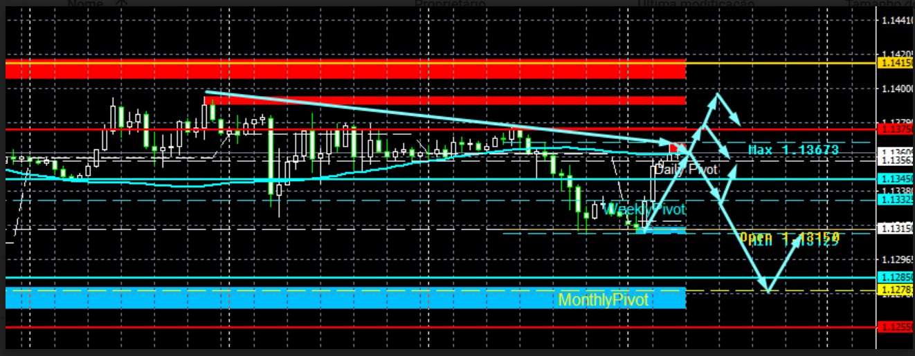 Se o preço permanecer firme acima do ponto de pivô mensal de 1.1278, o ponto de pivô semanal de 1.1332, e o ponto de pivô diário de 1.1356, o par euro/dólar provavelmente sobe.