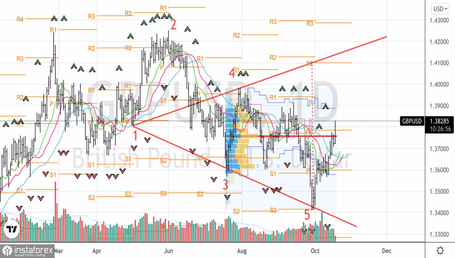 Os investidores já consideraram o início da reversão do QE em novembro. No gráfico diário do par, há um padrão de Onda Woolf com alvo em 1,41. É aconselhável comprar a libra em relação ao dólar norte-americano em uma retração. GBP / USD, Gráfico diário