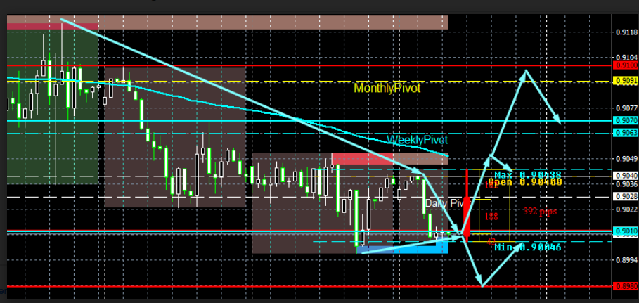 USD/CHF - par está sendo negociado a 0,9008 e abaixo do nível de abertura de 0,9040