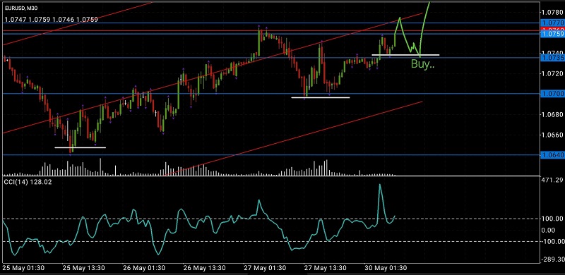 EUR/USD - compradores podem testar a zona de resistência de 1,0750 - 1,0770.