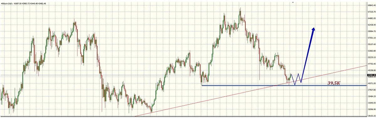 Quanto ao bitcoin, minha perspectiva de baixa tem sido verdadeira até agora. O preço caiu ainda mais para o nível de suporte de 36.400 dólares por token, de onde pode se recuperar para cima no gráfico intradiário. A curto prazo, espero uma ruptura deste suporte e uma nova queda em direção ao próximo nível chave de 33.000.