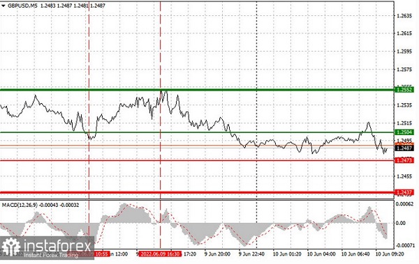 Análise de transações no par GBP/USD: O GBP/USD atingiu 1,2497 levou a um sinal de compra no mercado. Como a linha MACD esteve na zona de sobrevenda por muito tempo, o par subiu 30 pips. Ele foi para 1,2545, onde outro sinal de compra foi formado. Mas como a linha MACD estava longe de zero, o potencial de alta era limitado. Nenhum outro sinal apareceu pelo resto do dia.