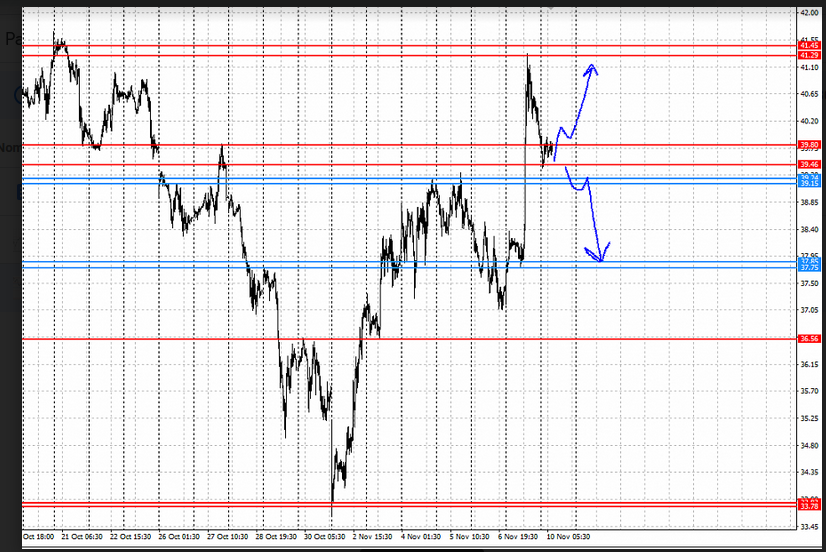 Consequentemente, você deve procurar pontos de entrada para abrir posições longas durante o dia se o preço ultrapassar a marca de 39. Nesse caso, você deve considerar a abertura de posições longas no nível de suporte mais próximo de 38,80. Se o preço consolidar abaixo dele, as negociações de compra não serão mais relevantes e você deve considerar a abertura de posições curtas.