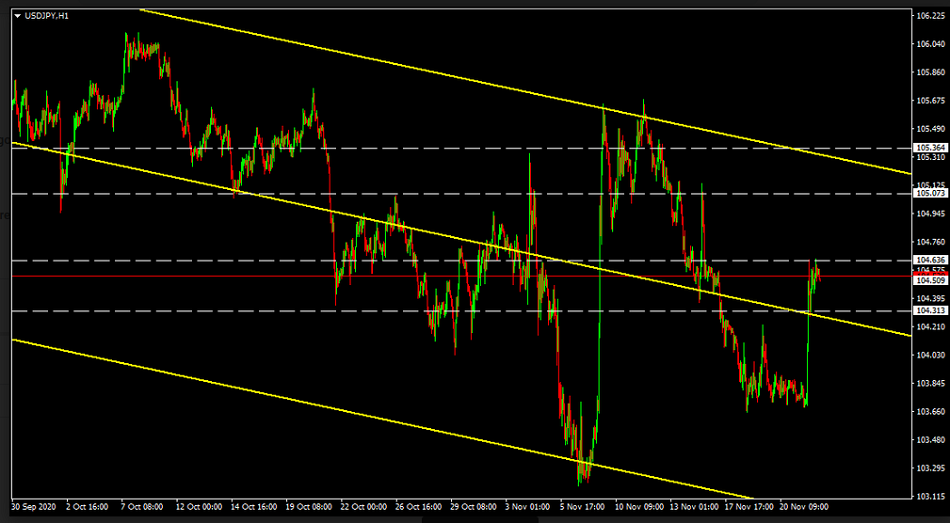 USD/JPY está testando atualmente o nível de resistência de alta de 104,64