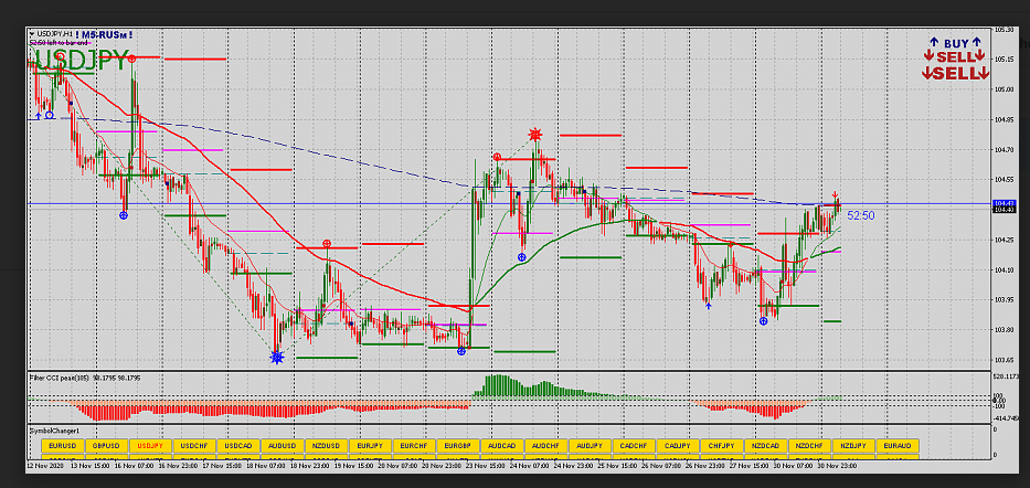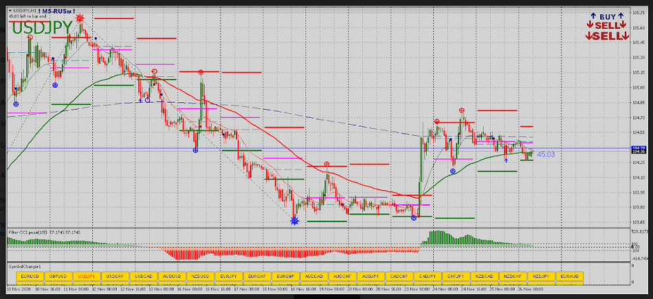 Na última quarta-feira, o par dólar americano / iene japonês tentou ganhar terreno. No entanto, a tendência de alta do par foi limitada pela ação dos compradores. O preço atingiu o nível 104,25, mas voltou a subir. O par está sendo negociado atualmente na área de 104,35. De acordo com os indicadores da tabela horária, nem vendedores nem compradores levam vantagem. Alguns indicadores apontam para a tendência de baixa do par, enquanto outros indicam sua estrutura de alta. Hoje, espero que o par dólar / iene se mova em uma tendência lateral, assim como ontem. Além disso, os americanos comemoram o Dia de Ação de Graças hoje. Portanto, não haverá impulsionadores para o movimento significativo do par.