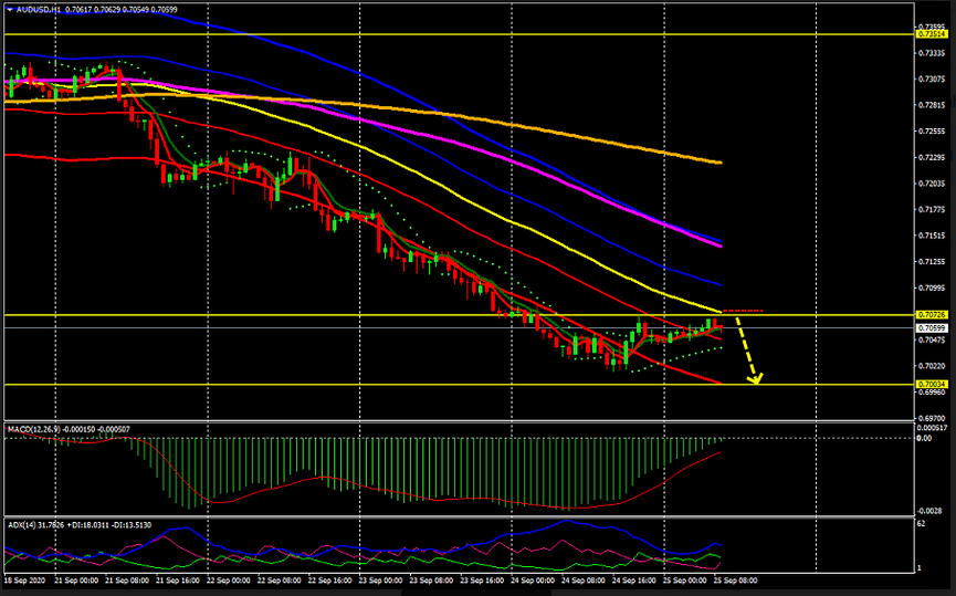 AUD/USD - está sendo negociado atualmente em nível 0,7060
