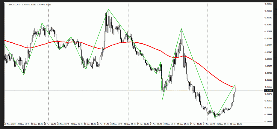 O período de tempo M15 é bom para definir os pontos em que o par se destacará e se estabelecerá com firmeza. Ele também mostra os pontos de entrada um pouco antes do período 1H.