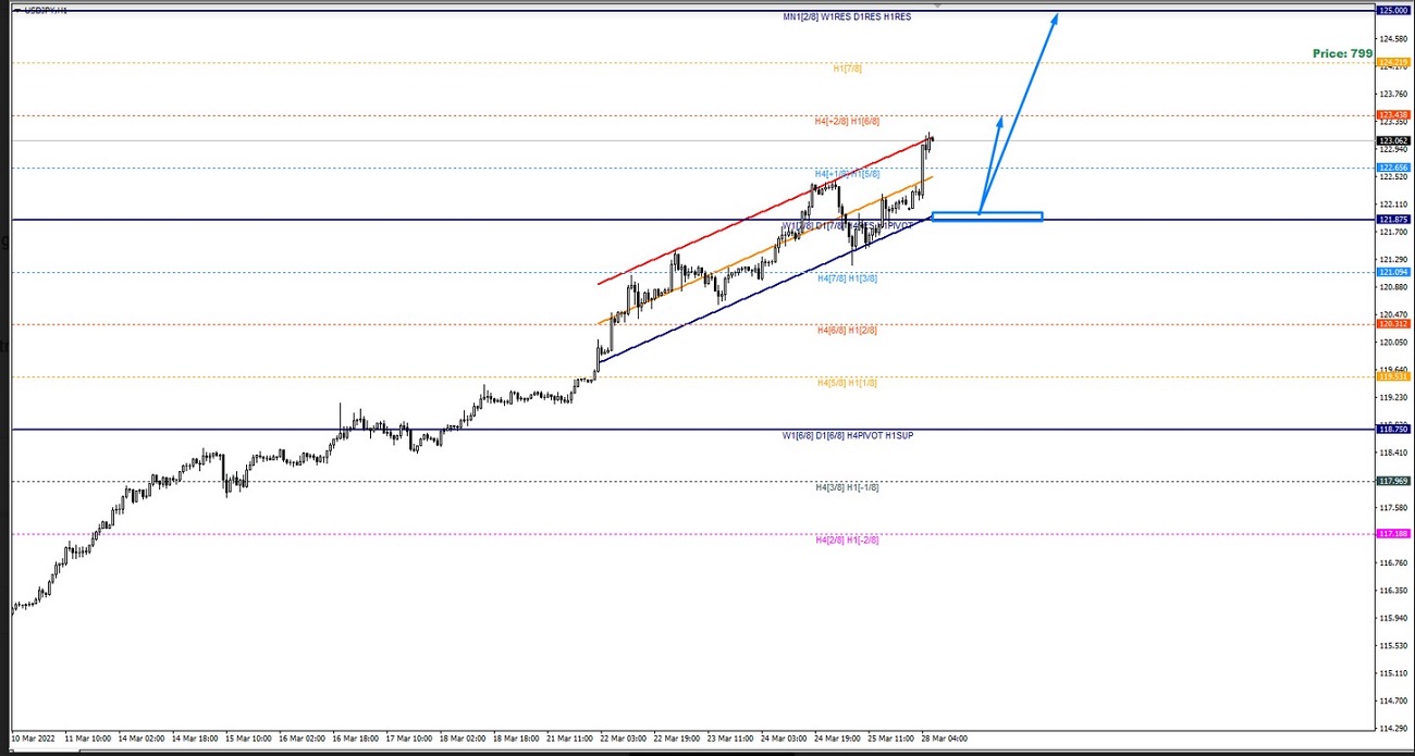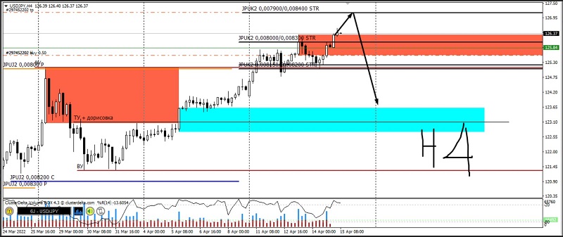 No gráfico de 4 horas, o iene japonês fixou-se acima do intervalo onde os volumes acumulados de baixa. Portanto, o par USD/JPY pode chegar a 127,13.