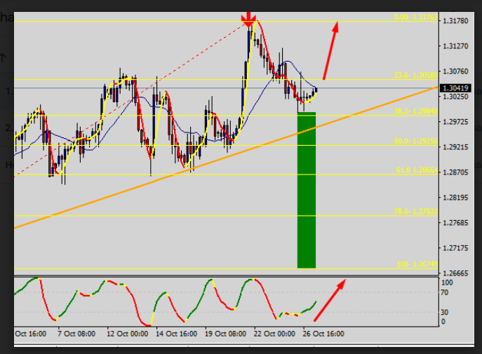 No gráfico 4H, após as cotações retornarem acima de nível 1.2989, o par pode subir para a área de 1.3060.