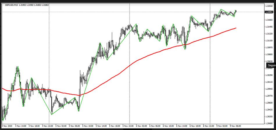 No gráfico de quinze minutos, as compras também são a prioridade. Isso pode ser confirmado pela média móvel.