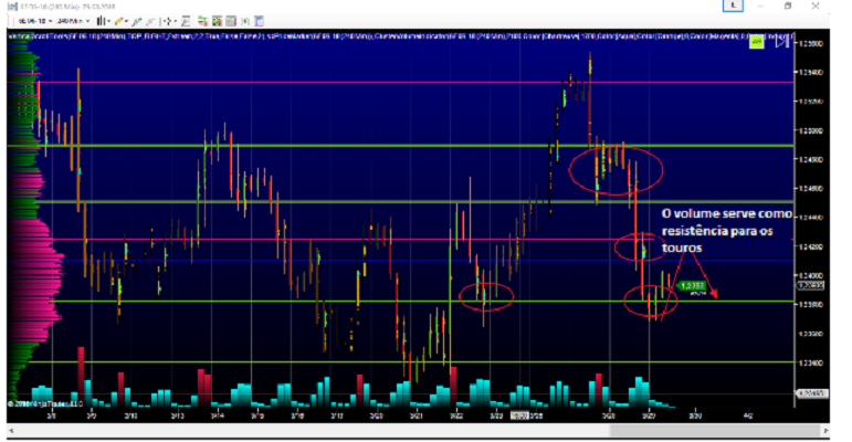 Euro. A previsão do meu ontem foi correta. Eu abri uma negociação de venda, mas perdi a meta e saí do mercado no ponto em que o preço parou.Ontem o preço mostrou o impulso descendente, quebrando o primeiro nível alvo e alcançando o próximo alvo. O preço pausou após este movimento, e grande volume foi negociado nesta zona. Espero que esta zona sirva de resistência se ocorrer um recuo. Meu cenário preferido é que um impulso será visto em um recuo. Na verdade, um recuo já está em andamento e talvez eu tenha perdido a oportunidade de entrar no mercado. Mas eu tenho uma chance de ir curto se o preço subir para a zona de grandes volumes de ontem.