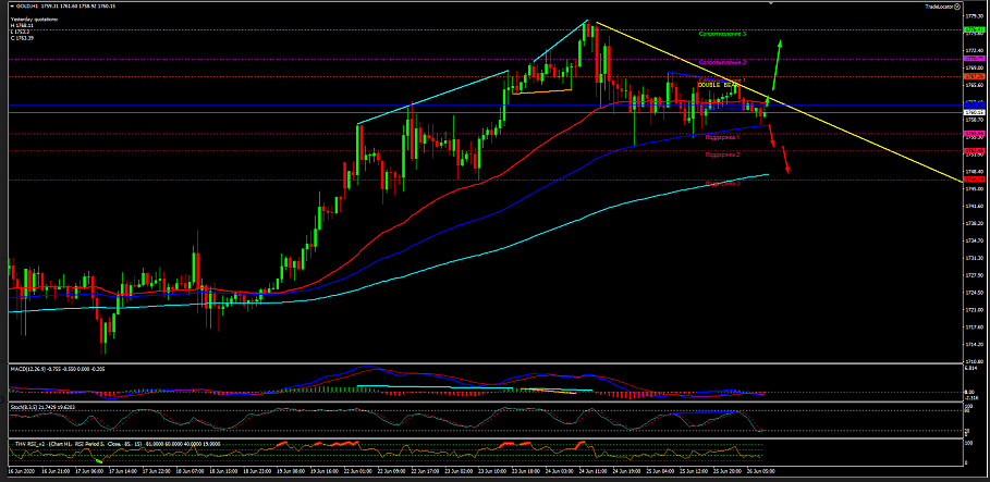 O par está sendo negociado no canal ascendente e acima da média móvel exponencial (ЕМА) com períodos de 100 e 200 dias, mas abaixo do nível de pivô.