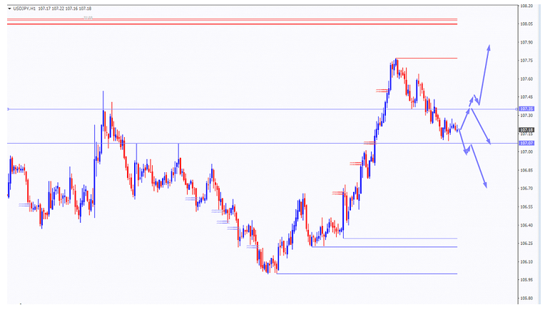 Níveis de resistência: 107,00, 107,10, e 107,40.