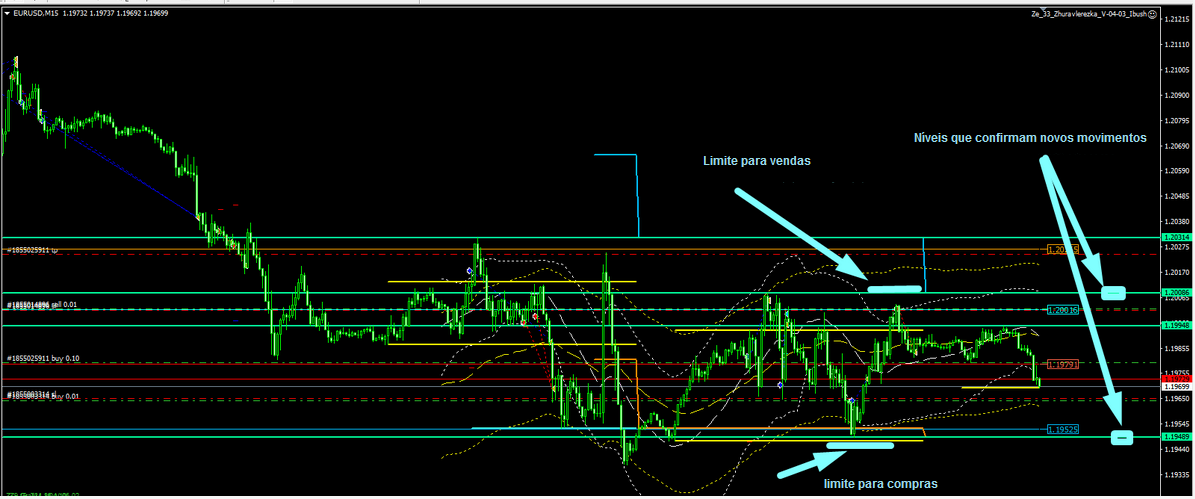 Eu decidi abrir um negociação de compra a partir do nível de suporte local. Embora o lado positivo seja limitado, será o suficiente para eu fixar o lucro mínimo. Se o preço for mais baixo, e quebrar4 o nível de 1,1940 e se manter abaixo dele, então um stop loss será acionado. Nesse caso, vou pensar em abrir uma operação de venda.