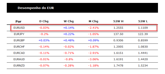 O euro vem caindo desde a abertura do mercado, perdendo cerca de 0,03 em relação ao dólar norte-americano. Mas essas mudanças não são significativas, enquanto na semana há algum progresso. O par conseguiu recuperar 0,14%. No entanto, em uma base mensal, o par ainda é menor em 2%, o que nos dá a queda total de 2,41%.