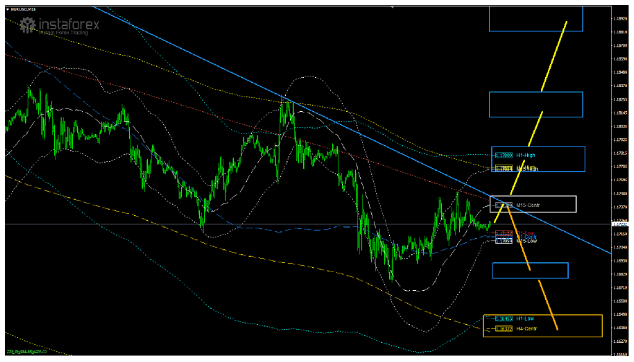 O par está sob a influência de vendedores ni 1H e 4H, e atualmente negociando na zona de interesse em M15, o que dá a perspectiva de continuar o declínio novamente. Até agora, eu não excluo a possibilidade de um ligeiro recuo para o nível de 1.1735, então eu espero uma reversão e uma queda com o teste de nível 1.1660, que provavelmente terá sido quebrado, e o par continuará a cair para o nível de 1,1590, então eu não vejo uma quebra e aguardo a reversão do par próxima do nível de 1,1590, com um crescimento para o nível de 1,1780, a sua fuga, e uma tentativa de testar o nível 1,1840.