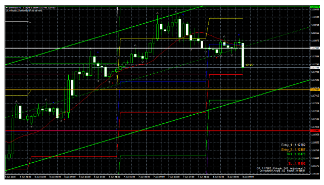 Eu abri uma ordem de compra pendente ao preço de 1.1730. O gráfico de 15 minutos ainda não chegou ao norte. É por isso que há uma probabilidade de um mínimo mais baixo. Eu certamente quero entrar no mercado com o melhor ponto de entrada. Durante minhas tentativas anteriores, o preço saltou imediatamente de 1,1745-1,1730 no gráfico de 15 minutos. Desta vez, o preço foi congelado em 1.1745 por 6 horas seguidas.