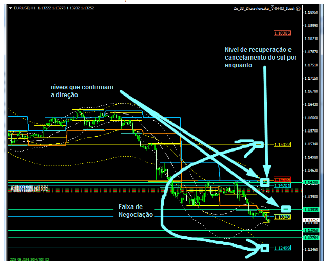 Bem, os níveis principais são 1.1432 e 1.1366, confirmando o sul ou o norte. Eles são principais, porque com a sua fuga, a probabilidade de mudar de direção diminui. Vamos conseguir a confirmação de ontem do sul como um exemplo simples. Foi o nível de 1,1413, e agora lembre-se que o preço fez. Sim, a direção ascendente estava correta, mas agora vamos ver onde está o preço, é assim que os níveis de confirmação funcionam.