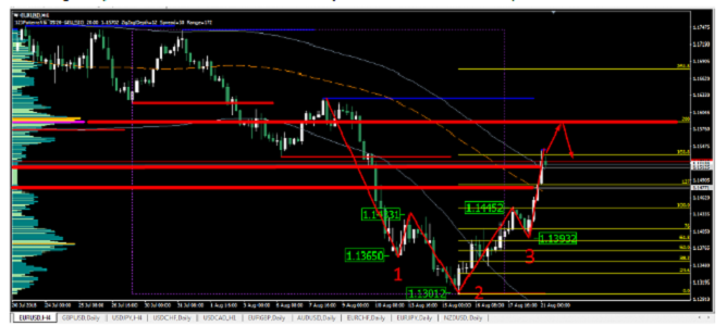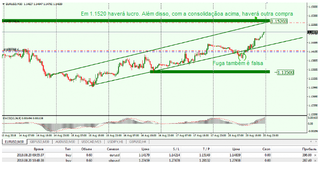 Eu não excluo que, antes de chegar a 1.1520, eles possam fazer um movimento corretivo para 1.1440. O teste desse nível quebrado será um sinal qualitativo para o crescimento contínuo.