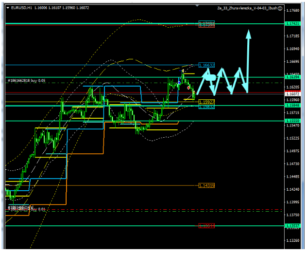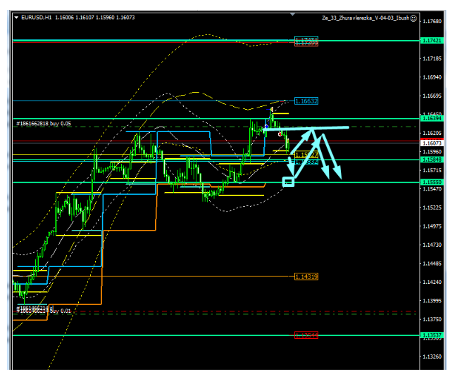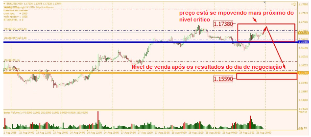 Deste nível, abri uma venda adicional. Take profit está no mesmo nível de 1.1600.