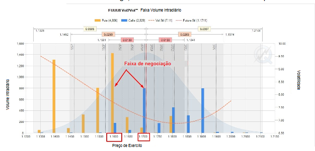 Se você compõe o intervalo de chaves, após o dia útil, verifica-se que, a partir de 1.1600 em futuros, ou 1.1578, opções de compra foram compradas e as opções de compra foram adquiridas em 1.700.