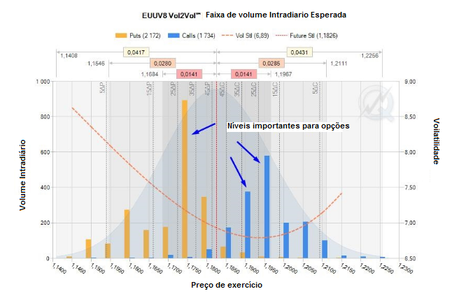 O mesmo se aplica ao nível de 1,1700, onde o volume máximo de opções de venda foi negociado.