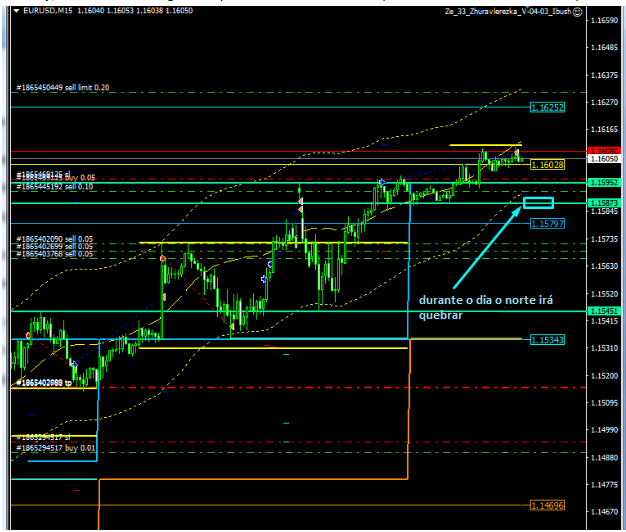 Hoje, quanto à negociação intradiaria, espero um movimento ascendente como na tela onde vou adicionar vendas, o target será 1.1530-1.1500, mas talvez eu feche cedo, porque estou planejando fazer compras agora. Após o fim do movimento do sul, eu irei para o norte com as metas de 1.2150.