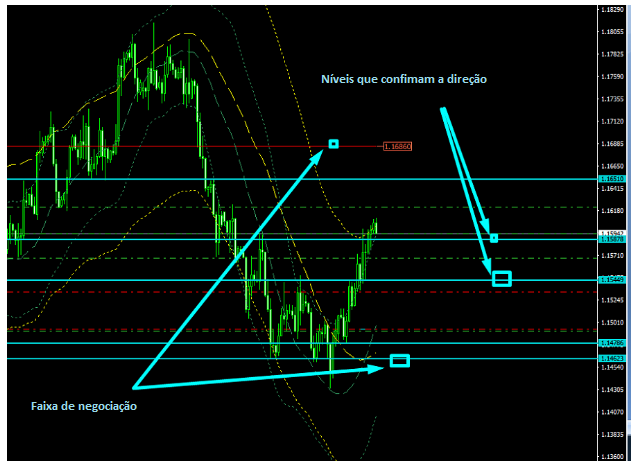 Quanto aos níveis que confirmam as direções, o topo é 1.1587, o fundo é 1.1544.