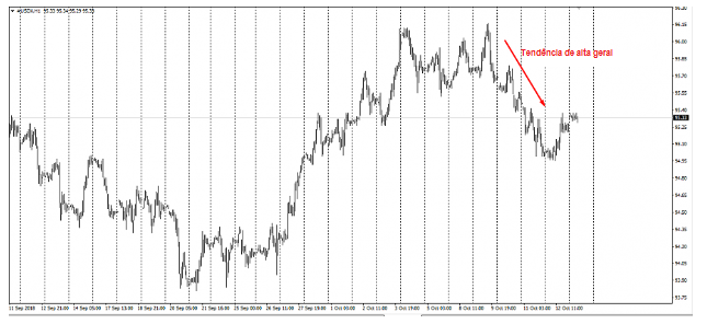 Para ajustar minhas transações, também usarei a tendência do Índice do Dólar.