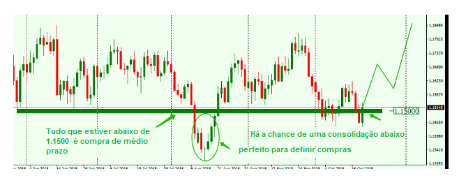 Também é possível que, antes de um movimento descendente, o preço esteja na faixa de 1,1520 - 1,1450.