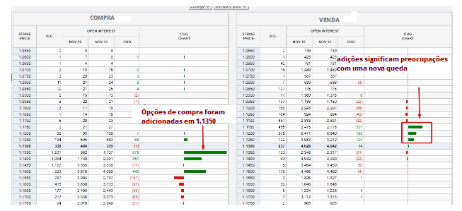 A adição de opções de venda em 1,1250 e menor também contribui para o declínio do preço.