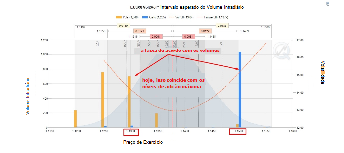 Quanto aos níveis de opção, tenho o contrato semanal em prioridade hoje. O volume máximo negociado para as opções de venda acabou sendo de 1,1250, mas hoje, considero o nível mais próximo do preço com um grande volume de negociações. Isso será 1.1300 a preços futuros / 1.1270 a preços forex.