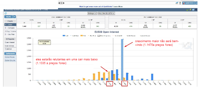 Aliás, há o nível Max Pain em 1,1350, onde a rentabilidade das opções é mínima, por isso não devemos trabalhar nesse nível por muito tempo.