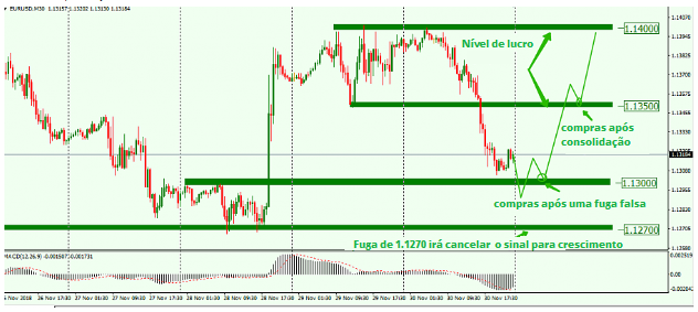 A condição para compras será a consolidação do preço acima do nível de 1,1350.