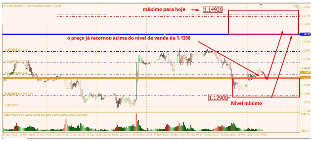 De acordo com o contrato semanal, na sexta-feira, houve um grande volume de negociação a 1,1350 a preços futuros e 1,1335 a preços forex.