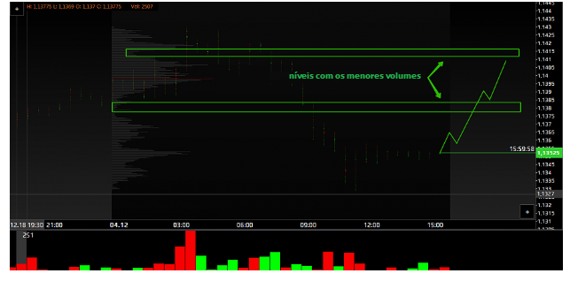 Acima deste nível, há o nível com um pequeno volume; o preço tentará testar este nível.