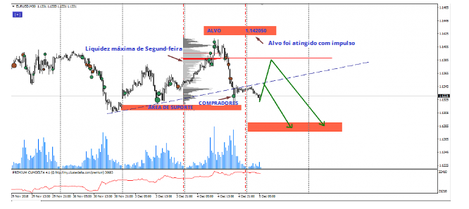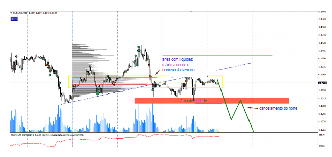 O perfil do mercado indica que, ao nível de 1.1395, ainda existe um intervalo significativo de vendas.