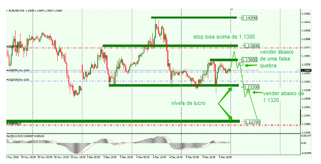 A ordem de stop loss deve ser colocada após a quebra do nível 1,1380. Este nível será a resistência mais próxima.