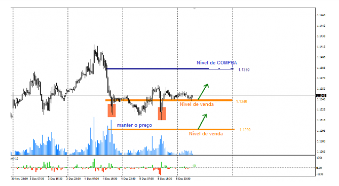 Se o preço se manter abaixo desse nível, será uma condição para abrir uma operação.