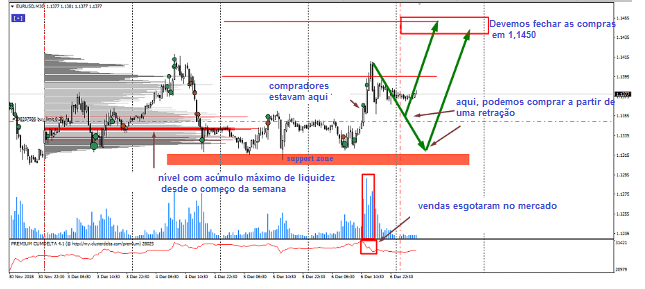 Após os resultados de ontem, o volume mínimo foi de 1,1365. O preço já testou esse nível.