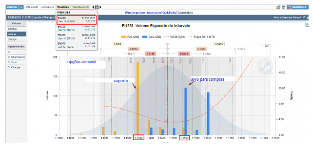 O volume máximo de opções de VENDA é na greve de 1,1350. Este nível pode atuar como suporte.
