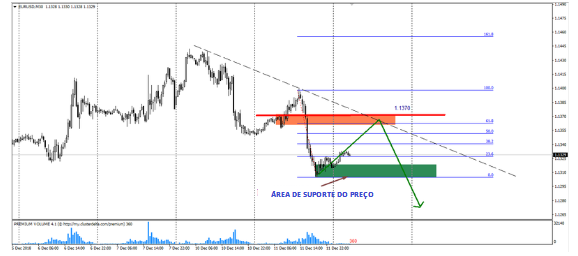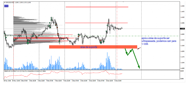 Se houver uma quebra do nível 1,1365 e o preço se consolidar abaixo, será possível vender.
