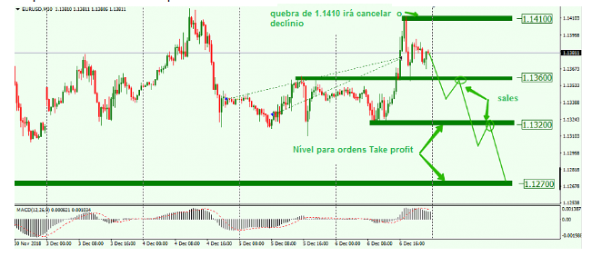 Nesta área, será possível procurar pontos para vendas intradiaria com alvo de cerca de 1,1320.