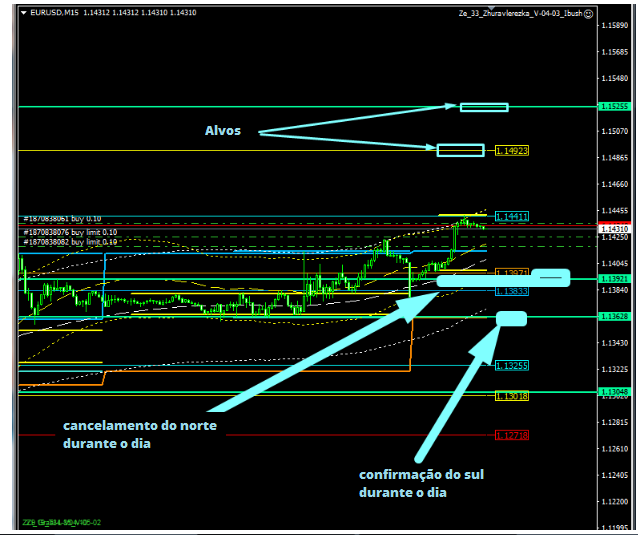 Os prazos M15 e M30 estão voltados para o sul. Н1 está no apartamento. Então, hoje, considero o sul.